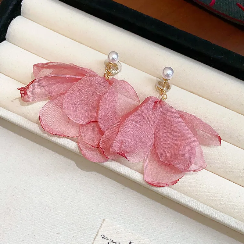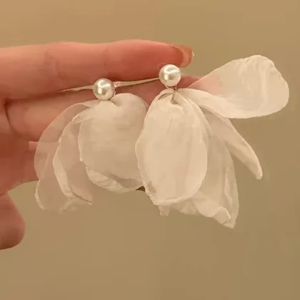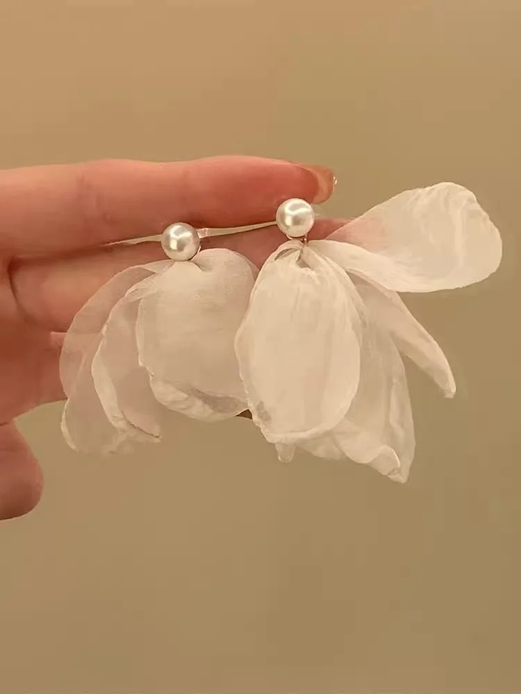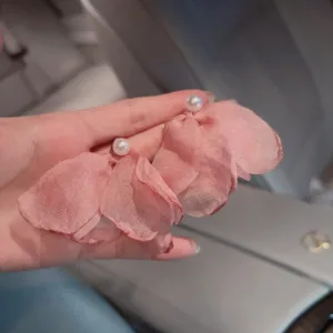 Chiffon Flower Pearl Earrings
